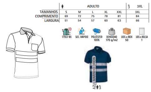 – Confeccionado em tecido técnico respirável que facilita a secagem rápida e eliminação do suor, inclui duas listas retro-refletoras termo-fixas elásticas no