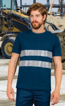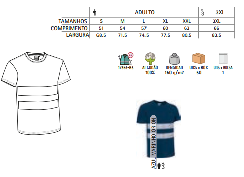 – Fabricada em tecido de malha lisa 100% algodão ring spun, suave e confortável, inclui duas fitas retro-refletoras elásticas termo-fixas no tronco e nas costas para facilidade de movimento e visibilidade aumentada para os